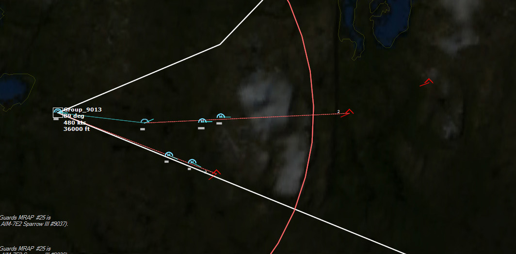 The new raid is detected152938Z The CAP closes in. Bardufoss itself marks 200nm from the fleet, so I really need to take out these bombers before then to eliminate the chance of cruise missile shots.153048Z Sparrows away. Unsurprisingly, the first four Sparrows miss. The second salvo is launched.