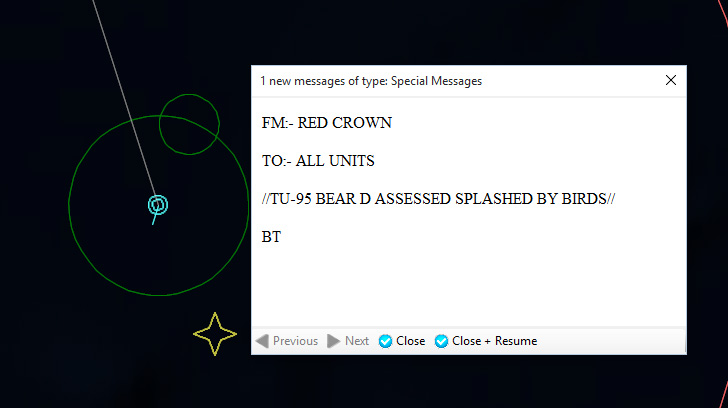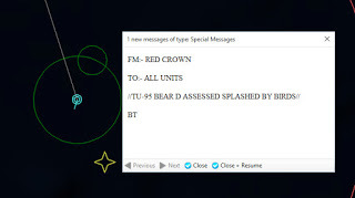 A Badger is taken outThe third Badger is splashed, and the raid is wiped out. Hopefully there will be no more, although there are plenty of fighters to deal with them if any should be launched.164604Z Bogey detected...again. These guys just don’t know when to quit. It turns out to be a tanker, which is shot down, and then the tanker returning home is also shot down.