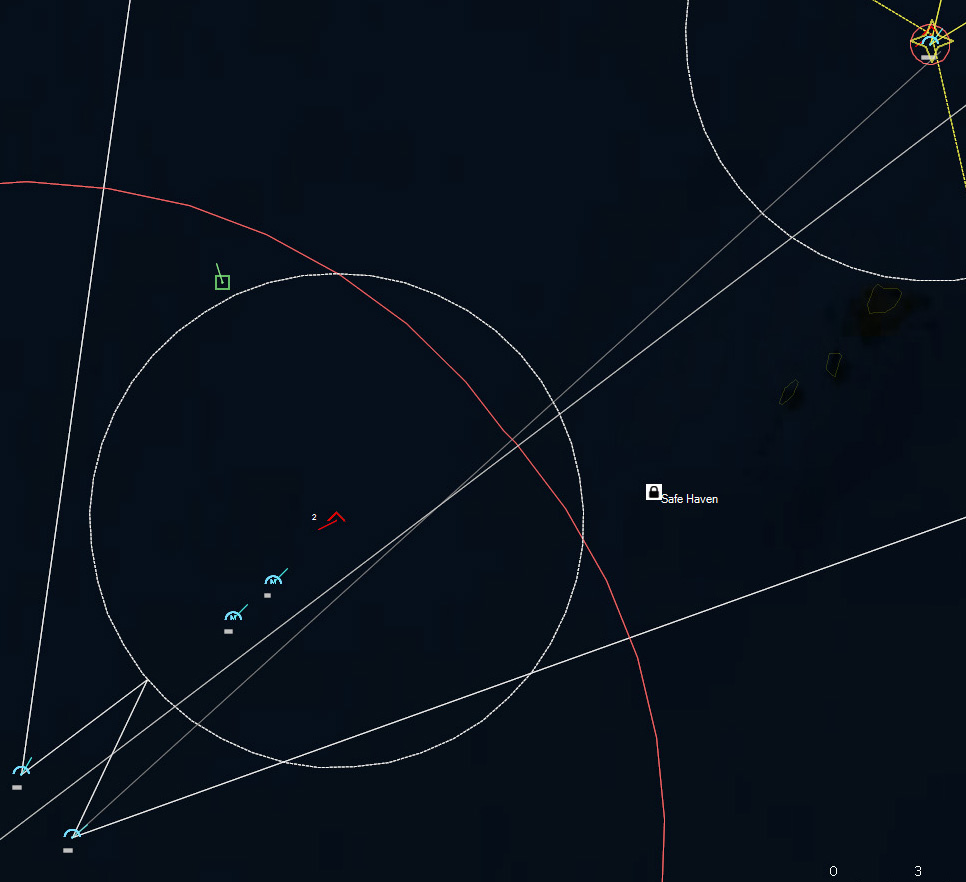 200830Z All ships are now within the Safe Haven, and despite it being “safe”, I’m still a little nervous. What if I sub got in here? I want to keep going for a while before I start unloading operations, because I my boats might be too slow.