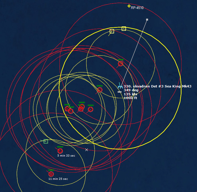 Contact!202420Z Torpedo away. The torpedo acquires and homes in...and misses. The seconds hits, but does not kill the sub. 824 Sqn #3 drops an active sonobuoy on the target to lock it in, and then has to depart the area.