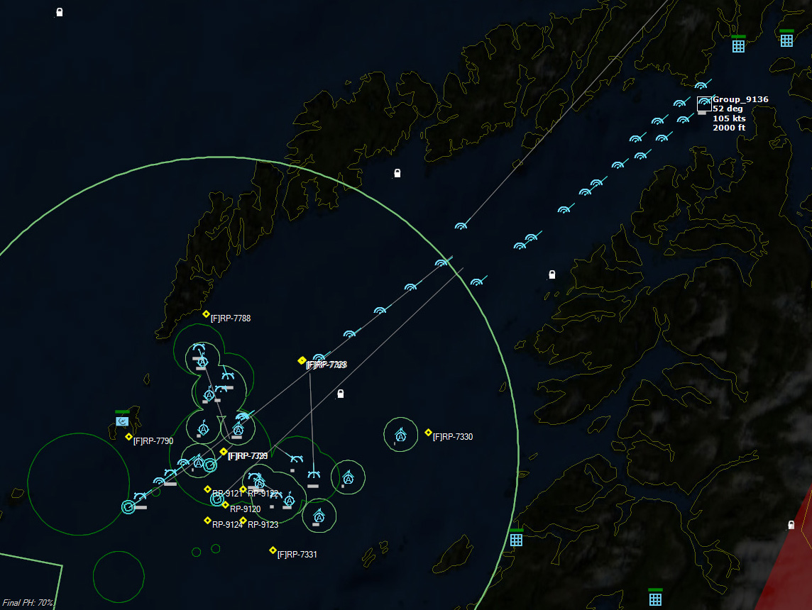 All aircraft begin the ferry mission to Bardufoss082007Z Enough landing craft make it into the area, that the scenario concludes.The hero of the scenario is clearly the pilot of 333 Sqn #8, who survived the nuking of his airbase, only to fly two sorties from it and rack up no less than nine kills. He is evacuated from Bodo, suffering from radiation poisoning, and later received the Norwegian War Cross with Sword, as well as Knighthood in the Order of the British Empire for his efforts in protecting the Ark Royal Group.