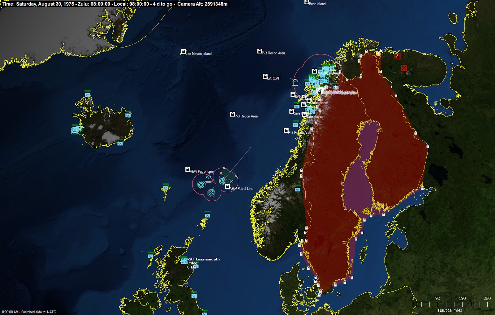 In the Norwegian Sea, STANAVFORLANT (Standing Naval Force Atlantic) has sailed from Faslane and taken a war footing in vicinity of Jan Mayen Island, and assumed an ASW posture. Shortly after receiving news of the Gibraltar incident, all NATO Forces have assumed the Second Degree of Readiness and are now preparing for war!