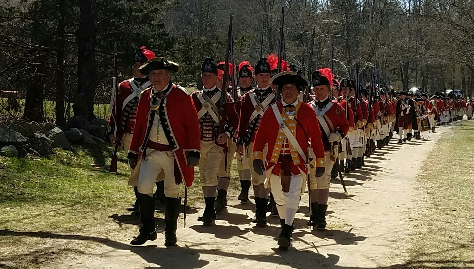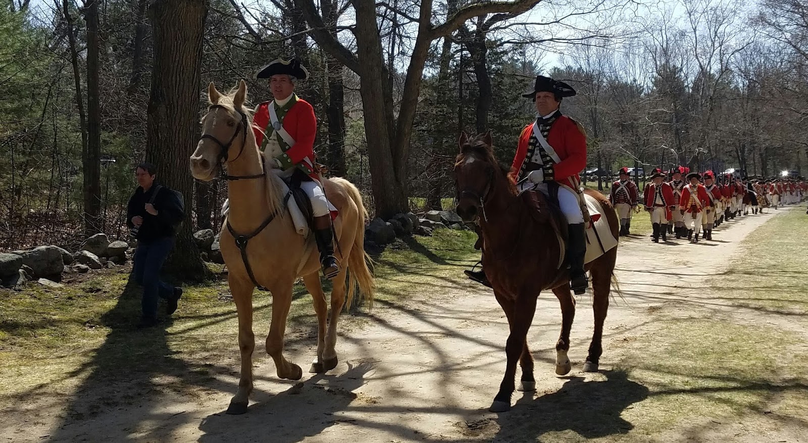 April 19, 1775But not everyone was doing as well as I could. Earlier in the ruck, I have to admit I felt a little intimidated by all the 20-somethings in uniform blowing by me on the trail, sometimes double-timing it. But now...I was passing more ruckers than were passing me, and those that were still on the third leg of the trail looked worn out. Some of them were limping, other looked beyond fatigued--they had looks of defeat, and in one case fear, on their faces.