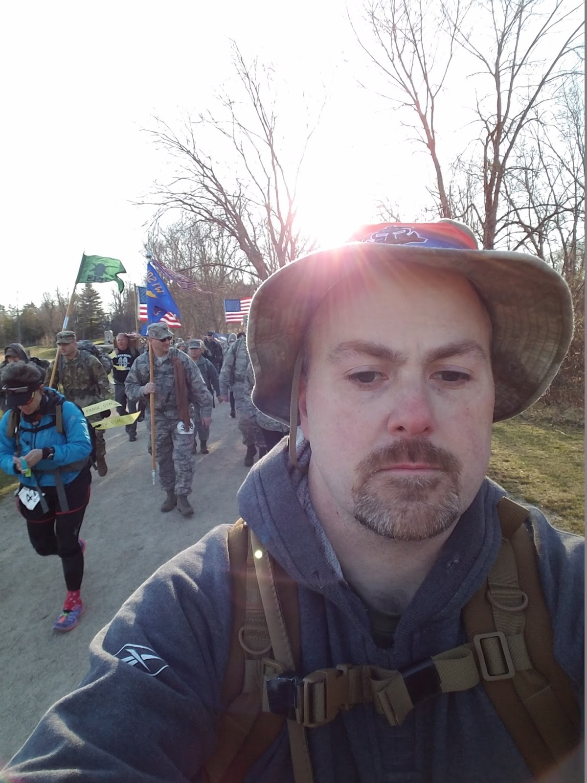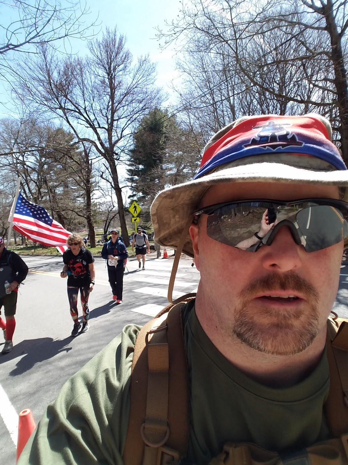 Part of the New England Spahten contingentThere were a lot of people there. While awaiting the start, I stood by a charity group called 22 Kill, which is a support group for veterans, named for the statistic that on average, 22 veterans a day commit suicide. From their website:22KILL is a global movement bridging the gap between veterans and civilians to build a community of support. 22KILL works to raise awareness to the suicide epidemic that is plaguing our country, and educate the public on mental health issues such as PTS.While one person read off names of lost veterans, the rest of us did 22 pushups. It was a poignant reminder of why we were all there that morning. I heard it many times that day: We ruck for those who cannot.