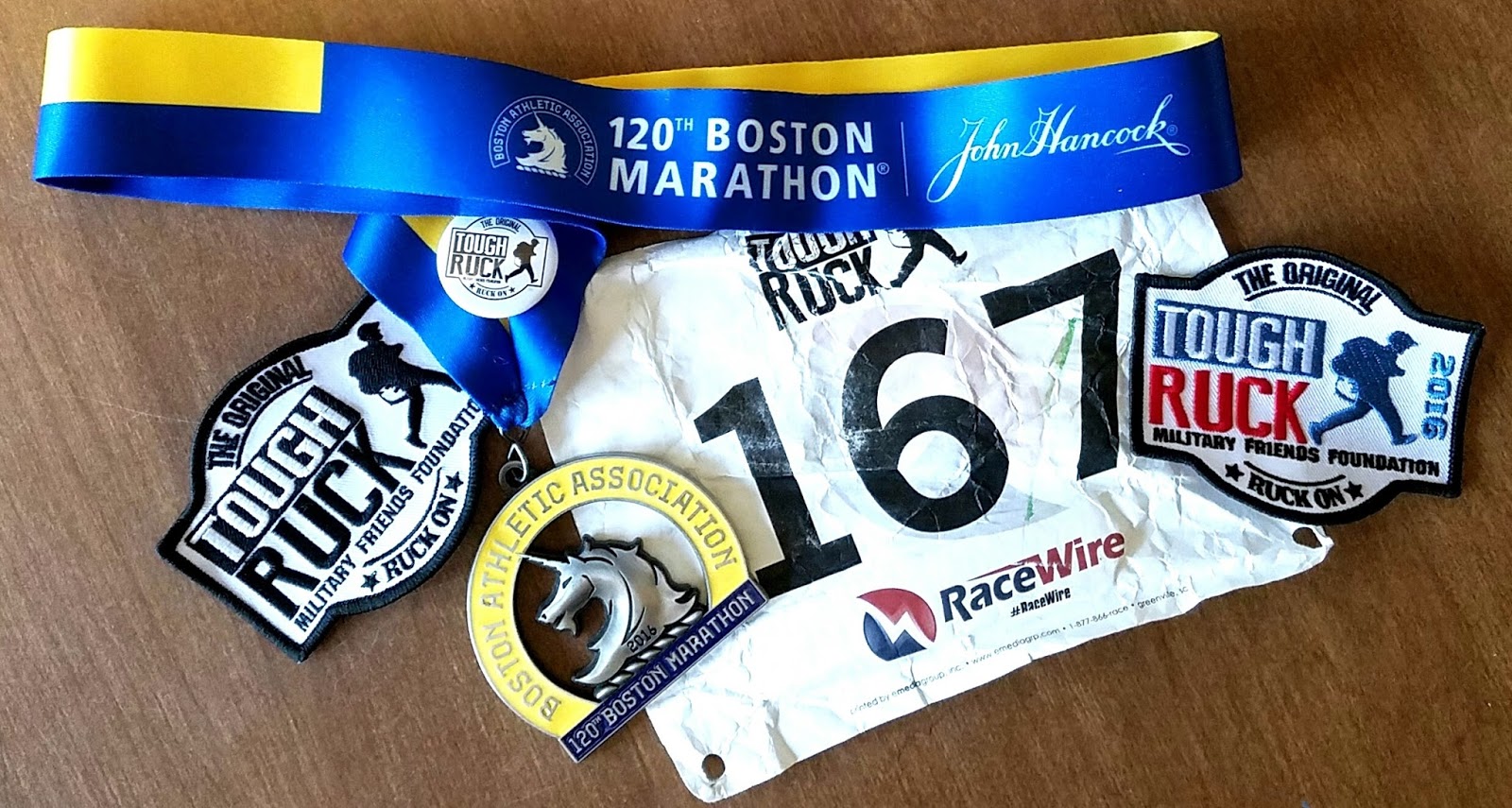 My Bib, patches, and Boston Marathon Medal.But the real reason I did this was to honor those would could not ruck, and whose ribbons I carried: