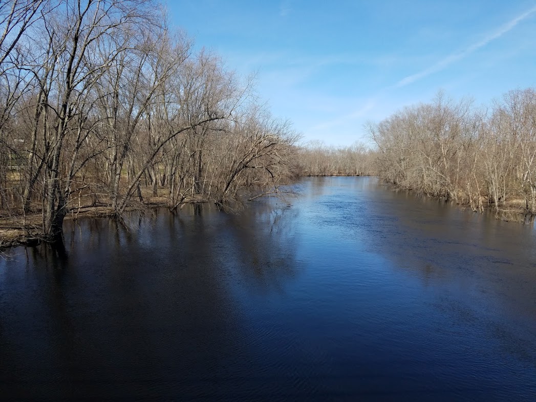 The Concord River, a short ways south of Old North BridgeBack into the center of Concord, where some cars passed by and honked to show their support. Then it was back up towards the Old Manse.