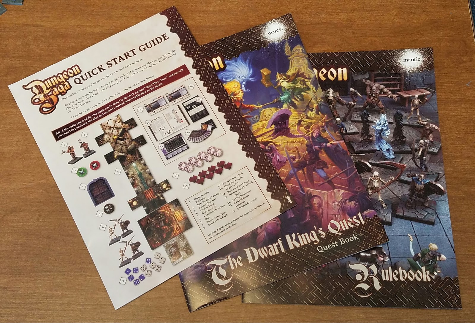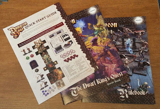 As I've gotten older and had less time to play large scale wargames, I've had more and more thoughts of a smaller game that could be played that was also more accessible to non-gamer geeks. I even did a post about it, hoping for a return Warhammer Quest. That hasn't happened, but Mantic Games has answered the call with Dungeon Saga: the Dwarf King's Quest.Originally I imagined playing with with adults, but now as my kids are getting older (currently 7 and 4), they will be interested in this sort of game as well.