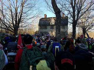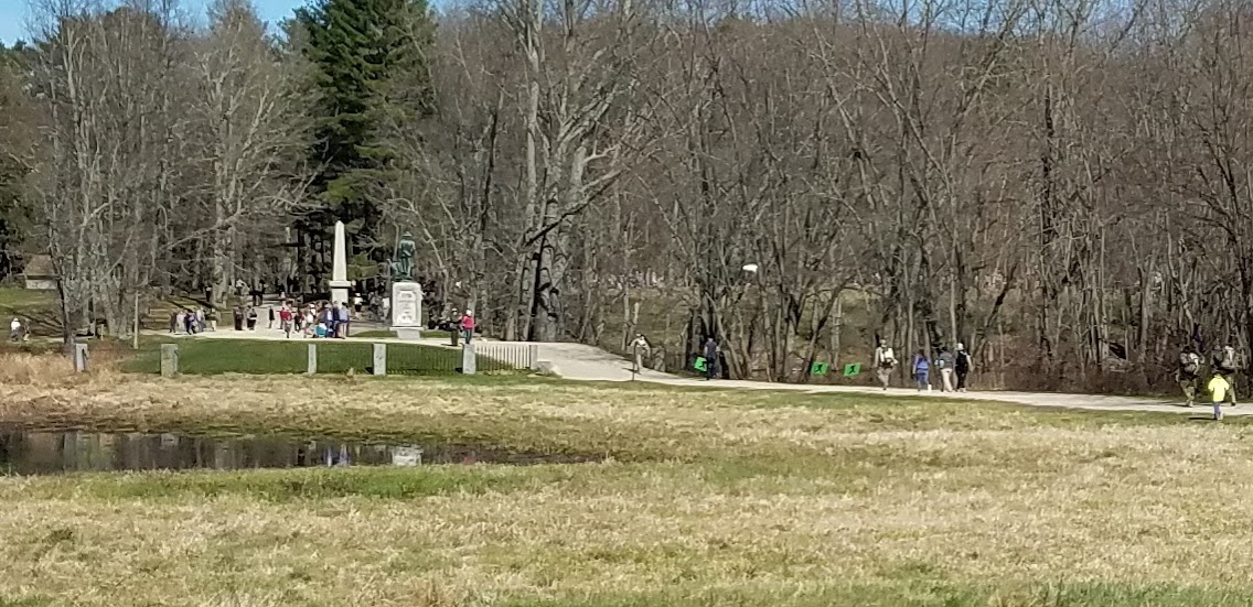 April 16 arrived. The weather was supposed to be good, but the morning was cold, so I dressed in layers. After taking the bus from the parking area I arrived at the Old Manse in Concord. Registration was organized and easy, and soon I met up with some other New England Spahtens and we took the team picture.