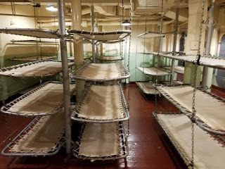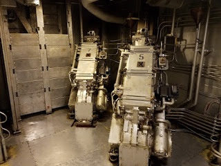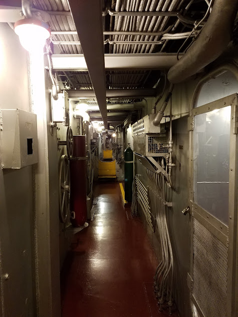 The longest forward/aft passageway on the ship, aka "Broadway"You also get the impression that if something terrible happened, for example, the ship is torpedoed in the middle of the night, it would be complete chaos. Men running to their stations, the ship listing, lights perhaps going out, etc. If I was below decks and the ship was flooding and in danger of sinking, I'd have zero confidence of being able to make it up on deck in time. Despite this being a battleship, everything is tight, cramped, and could easily get claustrophobic. Add to that the chaos of a ship sinking, it's a miracle anyone survived sinkings at all, and makes you understand just why so many ships sank "with all hands." It gives you some additional respect for those working deep within the ship, and the trust they had to have in their shipmates. They were all trapped in the tin can together, each man depending on all the others for their safety.