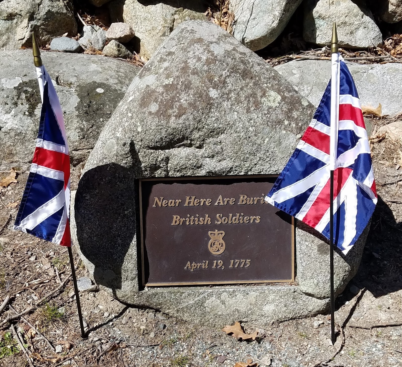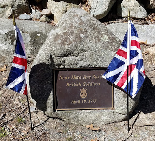 Near Here Are Buried British Soldiers. April 19, 1775.There were also spectators along the trail with water and snacks there to support the ruckers, which provided a morale boost. I was still keeping a good pace, but now the leaders, who had finished the first of four legs along Battle Road, were passing me going the other direction. Eventually I made it to Fiske Hill, which was the turnaround point at the end of the trail.