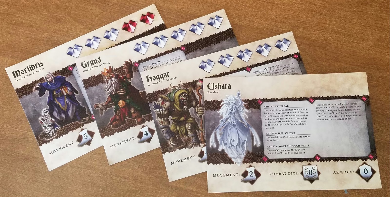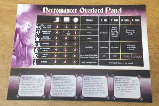 The Overlord player gets a reference card called the Overlord Panel, which has the stats of all the various monsters, and includes a damage table when those monsters inevitably get killed by the heroes.