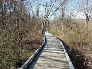Meriam House, 4.5 miles in.The trail wandered through fields and a significant amount of swampy land over which we had to walk on a boardwalk. The trail itself was pretty and the weather was beautiful, and at times I felt I was just taking a casual walk along the trail rather than participating in an event.