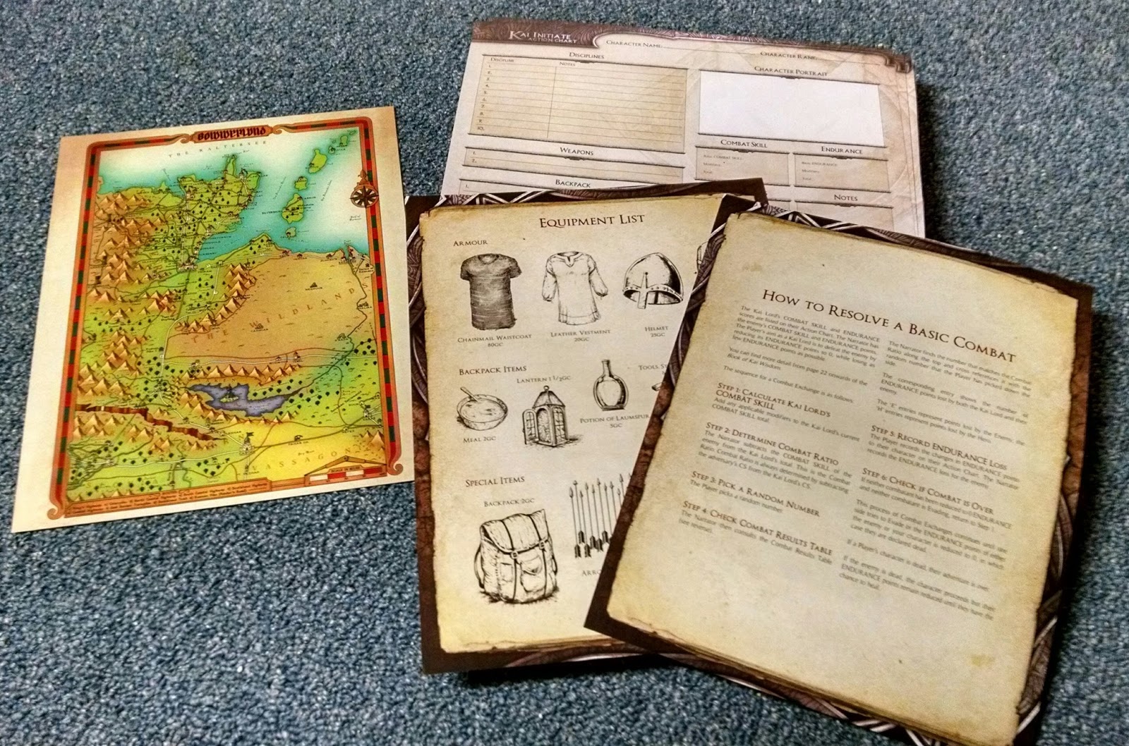 There are also some handouts that includes a double-sided map of Sommerlund and surrounding lands, some reference sheets, and blank Action Charts. While the Action Charts would work great for their intended purpose, since they are on such nice paper, it almost seems a shame to use them, so I will likely use photocopied versions instead.