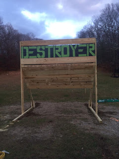 Next was the Destroyer. Both of us looked at this one with some trepidation. It was a wall with some handholds, perhaps 12 feet high, and the bottom 2/3 sloped away from the climber. Seamus did it with a boost, and was rightfully proud of that one. I tried it myself, slipped and fell off, tearing some skin off a finger. I tried it again, this time with a little help and coaching, and managed to get over the top. Again I was reminded at how I need to up my game.