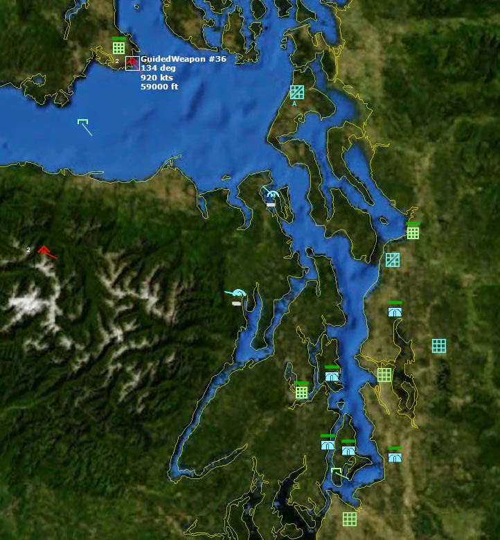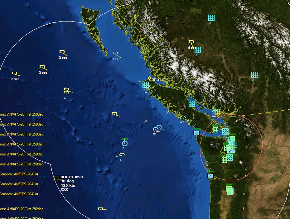 Three nuclear cruise missiles close in on a defenseless city.My eyes flicker away from the three missiles to the other inbound vampires. They appear to be moving towards the Seattle area. Seattle is protected by a tight network of Nike Hercules SAMs. A pair of SAMs took out a Tu-22 Blinder moving at 480kts easily enough, but can they handle cruise missiles moving at 920kts? I whisper a silent prayer.223625Z Navy 5 reports more missile launches, this time from just off Calvert Island. From their course, the likely target is Seattle.