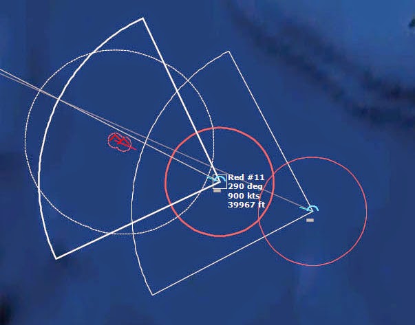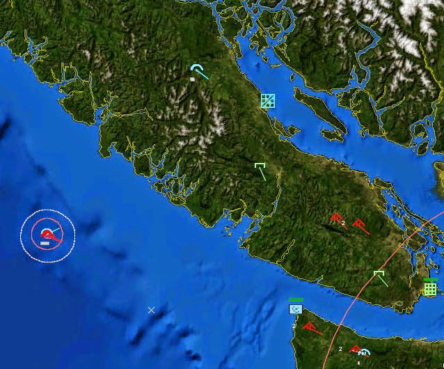 Red 3 and 4 fire missiles at the approaching Blinders.The attack is not as successful as hoped. Both Red 3 and 4 go Winchester, only having managed to destroy two of the three Blinders. "Scramble a Six from McChord," I order, and an F-106A Delta Dart, callsign Dragon 1, is in the air two minutes later.The Vampires appear to be on a course for Vancouver...what could they be?