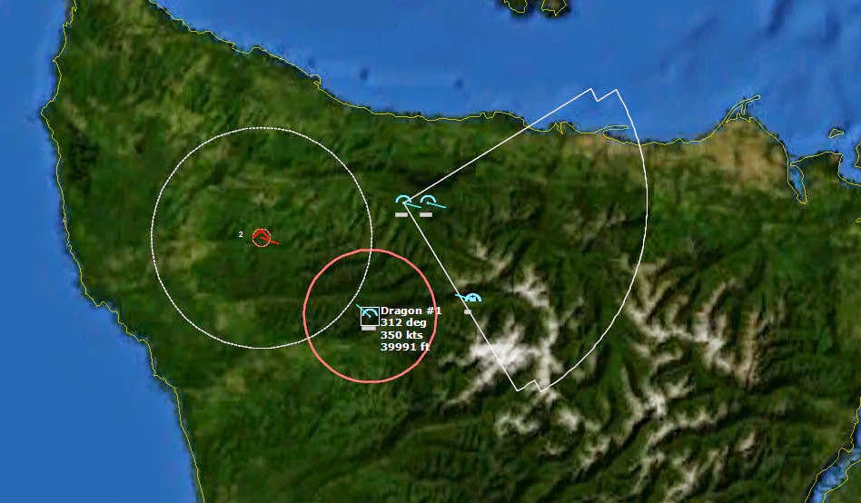 Dragon 1 loiters while the SAMs close in.222855Z Splash Twelve. I breathe a sigh of relief as the SAMs take out the Blinder. The bomber had approached within 66nm, or 8 minutes of Bremerton, Washington. I order Dragon 1 to intercept more bombers further out.