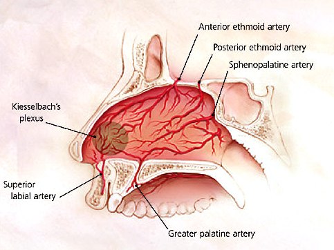 (image source)This is where several blood vessels join up, so makes for a heavy bleeding point. Things that can make nosebleeds worse include hot drinks/ food, as the heat causes the vessels to open up and dilate, thus feeding more blood to the area.