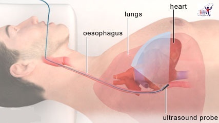 Most people are familiar with ultrasound and the typical echocardiogram- a scan that looks at the heart- done via the chest wall (transthoracic). However, the scan can also be performed from the inside via the oesophagus (gullet), which allows for better views of other chambers. Similar to having an upper GI endoscopy (camera test looking at the stomach and upper intestings), an echo probe is placed down the mouth, via the throat, and the heart imaged in the chest. Sedation can be given and local anaesthetic spray to the back of the throat, but it can still cause a lot of discomfort to some patients.