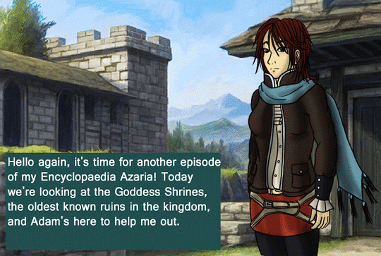 Eliza: Hello again, it's time for another episode of my Encyclopaedia Azaria! Today's topic looks at the Goddess Shrines, the oldest known ruins in the kingdom, and Adam's here to help me out.