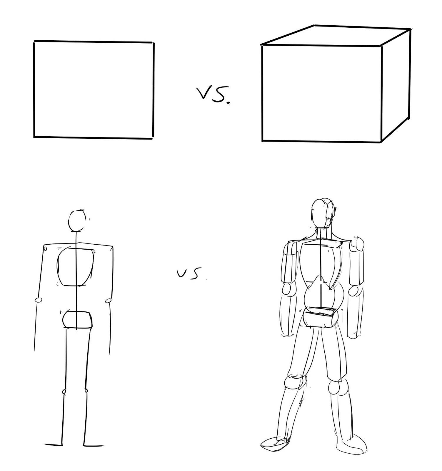 A crude simplification, but it does help you understand the volume of forms, and this is very helpful for proportions, perspective, lighting, pretty much everything!