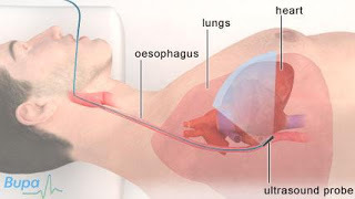Most people are familiar with ultrasound and the typical echocardiogram- a scan that looks at the heart- done via the chest wall (transthoracic). However, the scan can also be performed from the inside via the oesophagus (gullet), which allows for better views of other chambers. Similar to having an upper GI endoscopy (camera test looking at the stomach and upper intestines), an echo probe is placed down the mouth, via the throat, and the heart imaged in the chest. Sedation can be given and local anaesthetic spray to the back of the throat, but it can still cause a lot of discomfort to some patients.