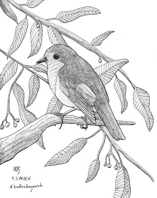 I notice for these challenges that my choice of complexity changes- I usually start with basic sketches, then elaborate into detailed pieces. This was another one that took over 6 hours- a pair of sleeping eagles which I found on an 'eaglecam'. As you can see the majority of my effort went into the birds, with a much simpler background, but I still think it works as it allows you to focus on the subjects without it being too cluttered.
