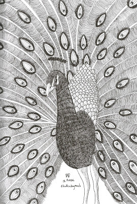 As an artist who loves drawing birds, what else could I draw for this prompt but a proud peacock? This was extremely time consuming and took 5 hours, as you can imagine looking at the details!