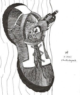 Almost at the end now! This prompt allowed me to mix all the styles I'd learned so far, and it was great to combine them all in a single piece! I particularly like the stippling on the breast and tail.SHOES