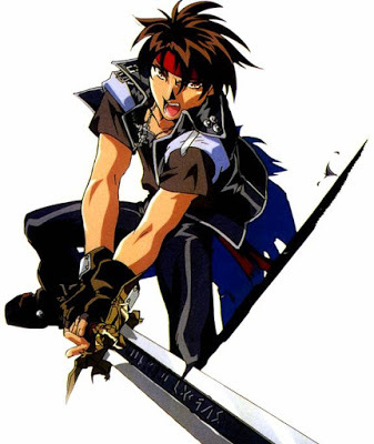 So it was Orphen's design that grabbed me most. My initial designs of my first original character borrowed quite heavily from him, in fact. The anime itself I enjoyed immensely; the worldbuilding and setting was great, the story was intriguing and the characters were fun. Orphen was yet another broody hero (but not so stoic and with a more dry sense of humour), Majic his bumbling apprentice, and Cleo the fiesty noblewoman/ occasional swordsman. The show also balanced its comedic moments with the more serious ones, giving it a strong overall tone.
