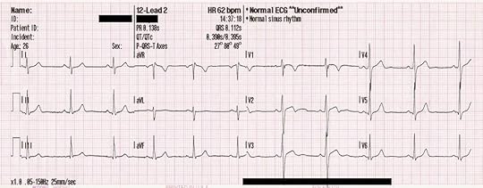 image sourceAn ECG (or EKG, electrocardiogram) looks at the electrical activity in the heart. While heart muscle beats on its own, it needs nerve activity to set things like rate (how fast it's beating) and contractility (how hard it beats). ECGs are actually extremely useful and can give a lot of information outside of just seeing the heart rhythm. We can do standard 12-lead ECGs, giving us an indication of what the heart is doing now, or 24hr tapes, where a holter is worn for 24hrs and the heart rate recorded continuously. This is often good to pick up abnormal heart rates associated with palpitations.