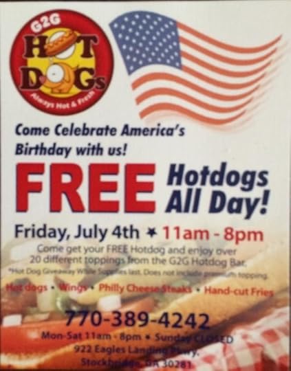 "We are giving hotdogs away all day on the 4th...bring this flyer and the dogs are on us!"