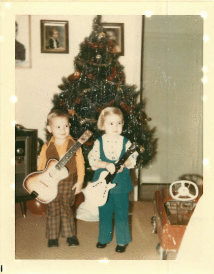 That's me rockin' the acoustic bass, macho lapels and drop-dead brown checker pants. I probably forced my cousin to pose next to me just to get the chicks.