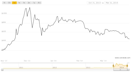 Since that time, Bitcoins have lose almost 60% of their value, now trading at an average of $450 according to my update from four minutes ago.