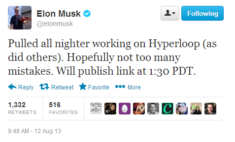When he's not trying to get us to Mars, making solar actually work, or producing electric cars that make people like me salivate uncontrollably, +Elon Musk works on Hyperloop.
