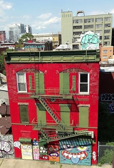 View from Williamsburg bridge, building cartoon street art.