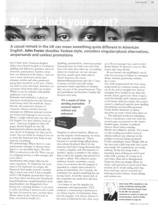 Her article prompted me to dust off an old piece written by John Foster, a British public relations (PR) industry leader I had the pleasure to get to know while working at National Grid in London some years ago. John and I loved to toss around language variations between our two home countries, as well as how language played into our PR worlds. He interviewed me for an article in the Chartered Institute of Public Relations’ (CIPR) magazine Profile and I contributed a chapter to a PR guidebook he wrote. I believe it was Writing Skills for Public Relations but don’t quote me on that; it was 20 years ago and I’ve long since lost my copy after multiple moves!