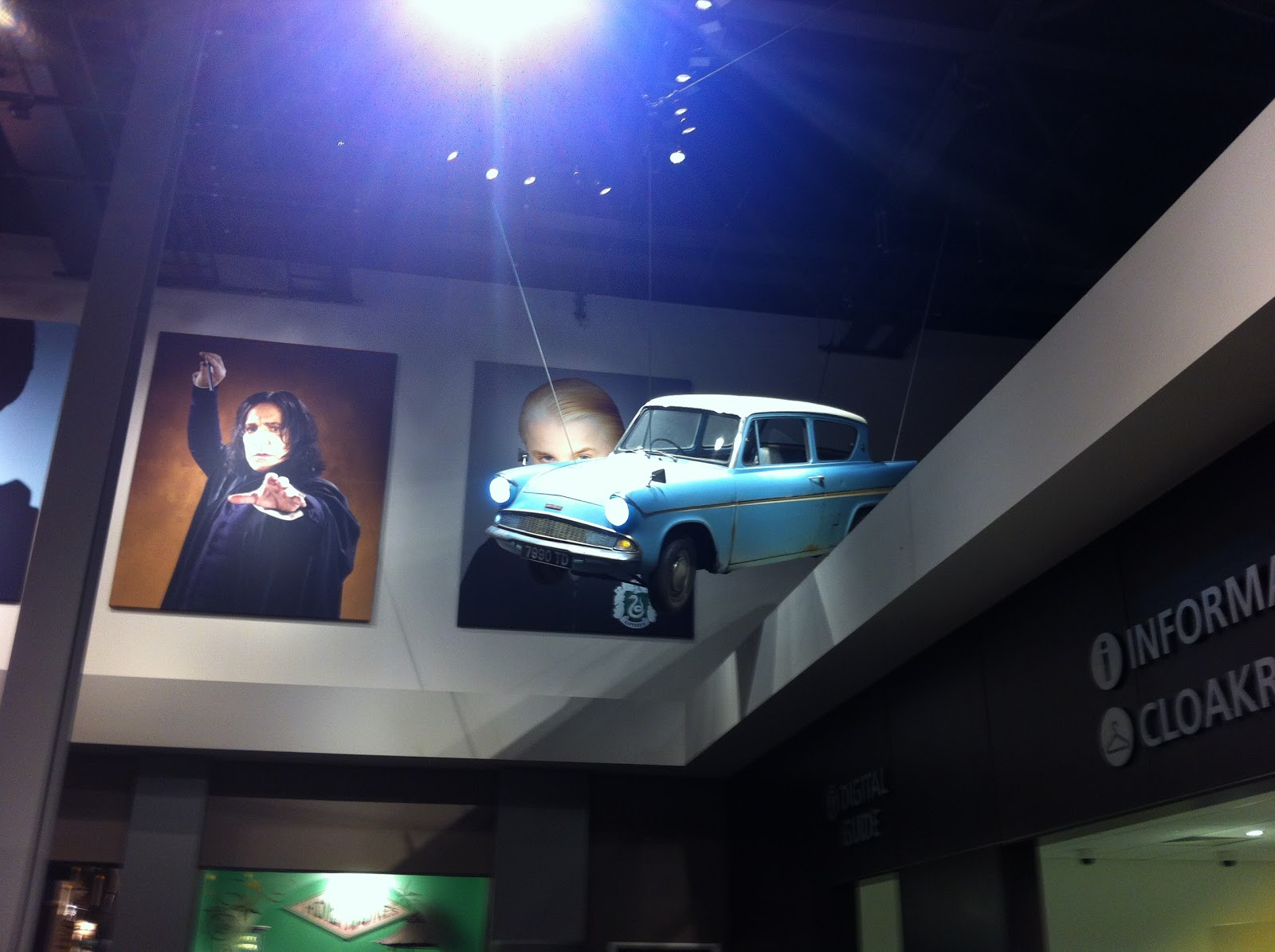 Can you believe the car found its way out of the forest? It now hangs happily in the entrance hall - which is huge by the way - for everyone to see. Along with Hedwig, in her cage, and several massive canvas pictures of the cast, the car decorates the entrance hall; there is the standard info deak (cloakroom) blah blah and the employees are awesome! They all know just a little too much about HP...Which was fine with me.Plus, we all got these Harry Potter passports for the tour. They were cool. And they'd come in ahndy later on too; stamps you know. Stamps. And flying lessons... and duelling club.