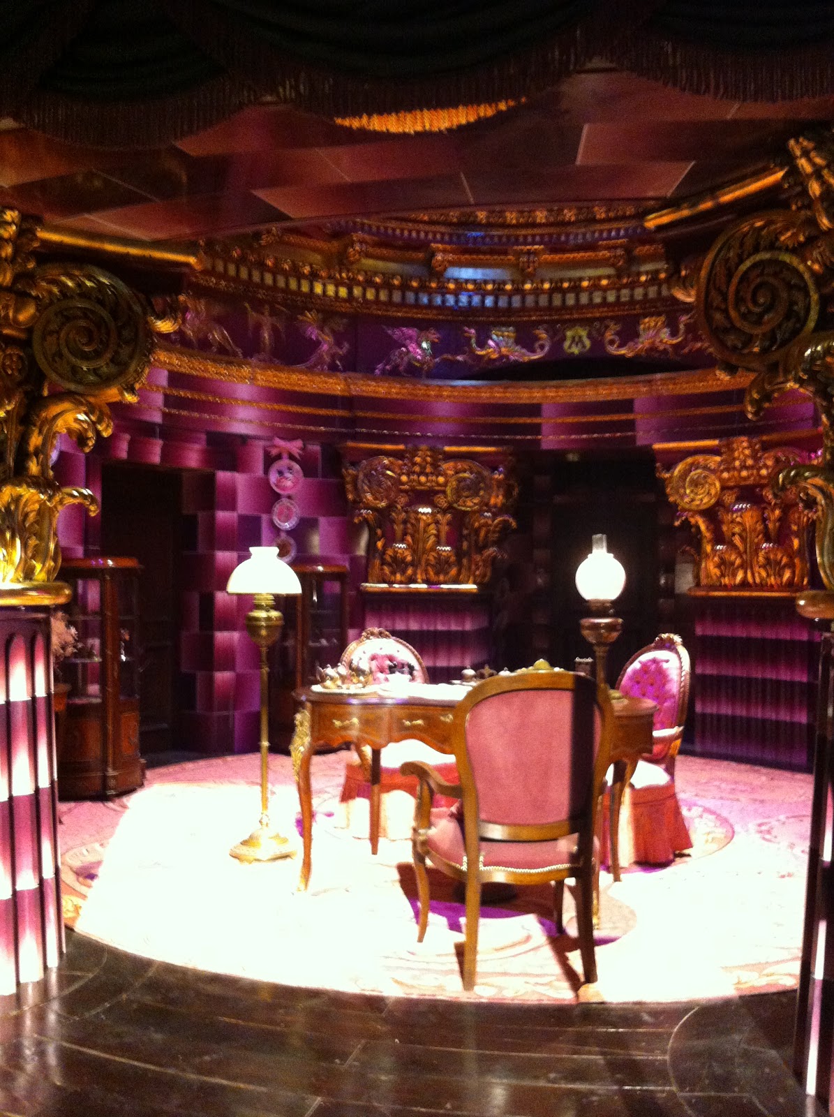And creepy does not do this set justice. Umbridge's office was so pink it was almost sinister. Voldemort's cave and Malfoy's dark manor had nothing on this. The pink was seriously revolting; it looked so happy it was evil. Shivers...