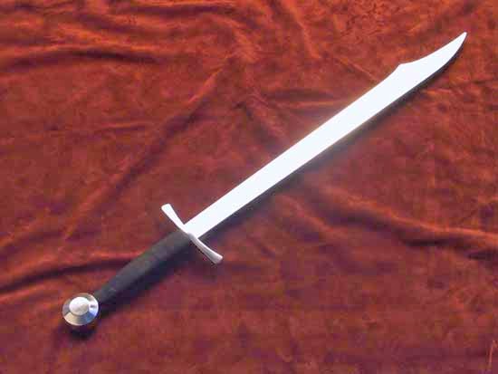 FalchionFalchion ~ is a one-handed, single-edged sword of European origin, whose design is reminiscent of the Persian scimitar and the Chinese dao. (Don't confuse this with the Dou!)The weapon combined the weight and power of an axe with the versatility of a sword. Falchions are found in different forms from around the 11th century up to and including the sixteenth century. In some versions the falchion looks rather like the scramasax and later the sabre, and in some versions the form is irregular or like a machete with a crossguard.
