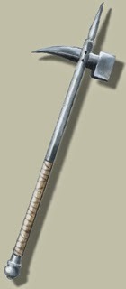 Horseman's PickHorseman's Pick ~ The horseman's pick was a weapon used by cavalry during the Middle Ages in Europe. This was a type of war hammer that had a very long spike on the reverse of the hammer head. Usually, this spike was slightly curved downwards, much like a miner's pickaxe. The term is sometimes used interchangeably with war hammer. A metal-made horseman's pick called "nadziak" was one of the main weapons of the famous Polish winged hussars. A weapon of late make, the horseman's pick was developed by the English and used by their heavy Billmen, a unit of heavy infantry. It was used with great success during the Hundred Years War. A use of the horseman's pick was to tear men from their mounts.