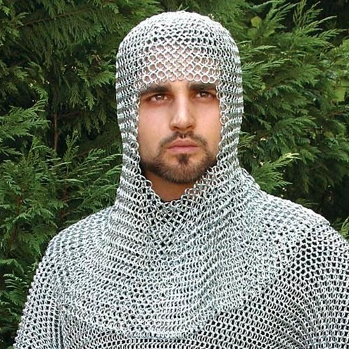 chain-mail coifYes, coif. Pronounced 'koif'. Basically a chain-mail hood. Coifs were usually worn underneath the plate armor and helm. So if you lost or removed your helm, technically, your head would still be protected by the chain hood underneath.
