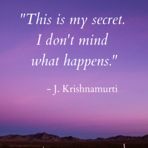 There’s a quote that’s been rolling around in my head for a few months. In his later years, the Indian sage and spiritual teacher Jiddu Krishnamurti gave a talk in which he offered to share his secret to living a joyful and fulfilled life. “This is my secret,” he told a rapt audience. “I don’t mind what happens.”