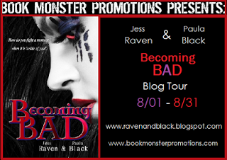 That's right. Today marks the start of the Becoming Bad blog tour. For the month of August, Raven and Black will be touring the virtual highways, stopping by a host of book blogs with interviews, guest posts, reviews and excerpts. There will be prizes and giveaways too, so please be sure to stop by