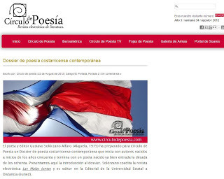 He preparado, para Círculo de Poesía , de México, un dossier de poesía costarricense contemporánea. La muestra consiste en una breve presentación (que requerirá adiciones, correcciones y aclaraciones) para introducir la obra de doce autores, nacidos entre 1950 y 1990, y por supuesto, una selección de la poesía de cada uno. El trabajo se complementa con una bibliografía recomendada que podrán consultar al final de esta entrada.