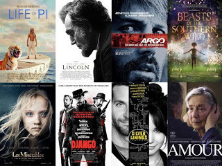Aquí les dejo mi lista, con los que considero deben ser los ganadores. Como podrán ver es bastante equitativa. Puro juego por un lado, porque solo eso puede ser darle algo a los bodrios de The Hobbit y Zero Dark Thirty; y puro deseo por otro, porque difícilmente algo de esto se cumplirá: