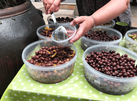 I was hoping for black olives from a can, but I couldn’t find an animated gif of that. Green ones from a jar were also a staple, though not fancy olives like these. Oh well, whatever.