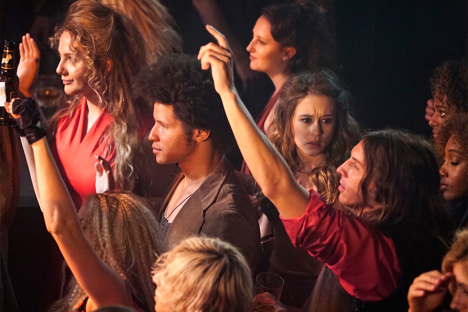 Meanwhile, Angela Bassett's and Matt Bomer's characters plot to bring down Queen Gaga. With Matt out of the picture as her main boy-toy squeeze, they use the next best thing, his mother. Still going through the immortal sickness herself, Kathy Bates finally drinks a blood mixture made specifically for Gaga by the cross-dressing bartender Liz Taylor. Over blood cocktails and cat food (read: liver pate) for some arrogant hipster guests, Liz reveals his story. He's not gay nor does he say he is a transgender but just a crossdresser.