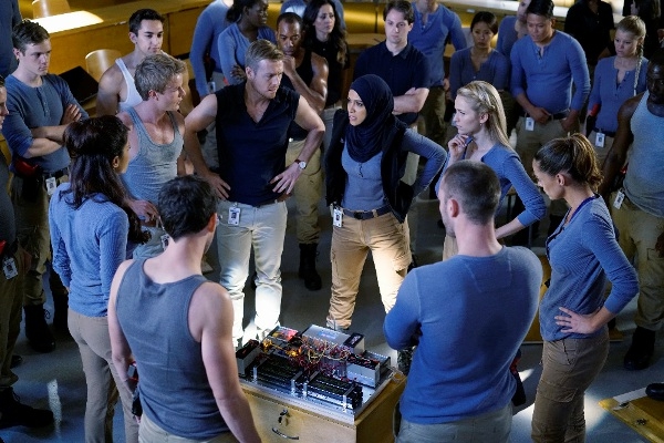 Sorry Edie, you're gone from another show. Back during training, Asher steps up to diffuse the bomb as he's the only experienced explosives expert. Typical movie/show bomb stuff, he cuts and pulls some wires to speed up the timer, but in doing so opens the door out of the classroom. Some people too frightened by blowing up scamper away. Those that stay watch the countdown end and the director come waltzing in talking about congratulations for passing the test. They needed to risk their lives for the country or else why be there?