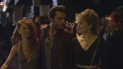 And as if that weren't confusing enough, his next scene had him waking in bed with blondie but not remembering it. Now, did she save him that night, take him to his room, screw the memory of sex right out of him, he went to the police station, got fired, came back to the hotel where she subsequently screwed him so good she sexed his memory out AGAIN because that's how they played it unless there was some time-jump in there I'm not aware of. Dude woke up and demanded she get out of his bed as only bits and pieces of their slap and tickle session flashed through his mind.